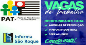 São mais de 80 oportunidades de trabalho, com destaque para as novas vagas nas áreas de PAT tem novas vagas para Auxiliar de Produção, Pintor Industrial, Serralheiro e muito mais, entre outras.