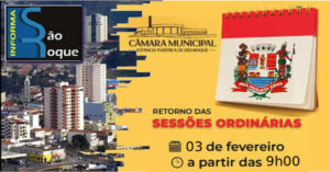 As Sessões Ordinárias da Câmara Municipal da Estância Turística de São Roque estão suspensas em virtude do recesso previsto na Lei Orgânica do Município e no Regimento Interno da Casa de Leis