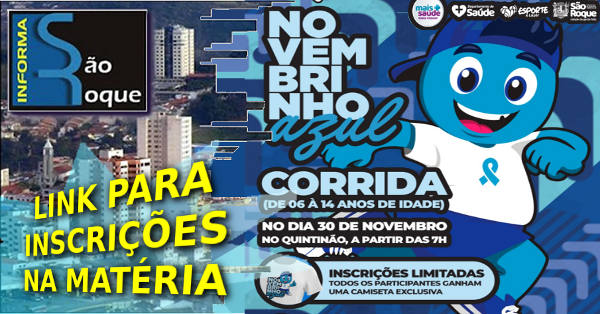 São Roque sediará, no dia 30 de novembro, a 1ª edição do Novembrinho Azul, uma corrida especial voltada para crianças e que integra as ações municipais de conscientização no mês do Novembro Azul, dedicado ao combate e à prevenção do câncer de próstata.