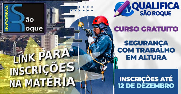 Qualifica São Roque abre inscrições para o curso de Segurança em Trabalho em Altura