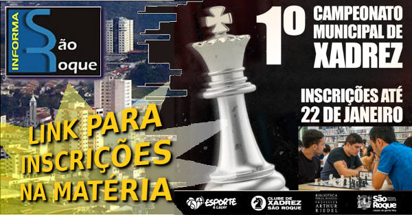 São Roque sediará, no dia 24 de janeiro, o primeiro Torneio Municipal de Xadrez de sua história. Promovido pela Divisão de Esportes, a competição acontecerá na Brasital.