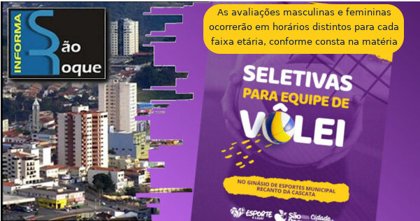 A Divisão de Esportes de São Roque, em parceria com o D1 Vôleibol, realizará, nos dias 17 e 18 de janeiro, sábado e domingo, as seletivas de vôlei para a…