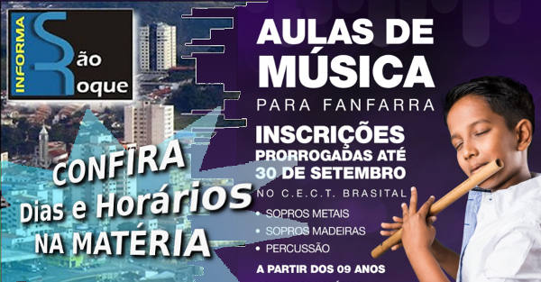 A Prefeitura de São Roque, por meio da Divisão de Cultura, está prorrogando as inscrições abertas para as aulas de musicalização para Fanfarra, como parte do Projeto Banda Musical de…