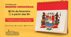 As Sessões Ordinárias da Câmara Municipal da Estância Turística de São Roque estão suspensas em virtude do recesso previsto na Lei Orgânica do Município e no Regimento Interno da Casa de Leis
